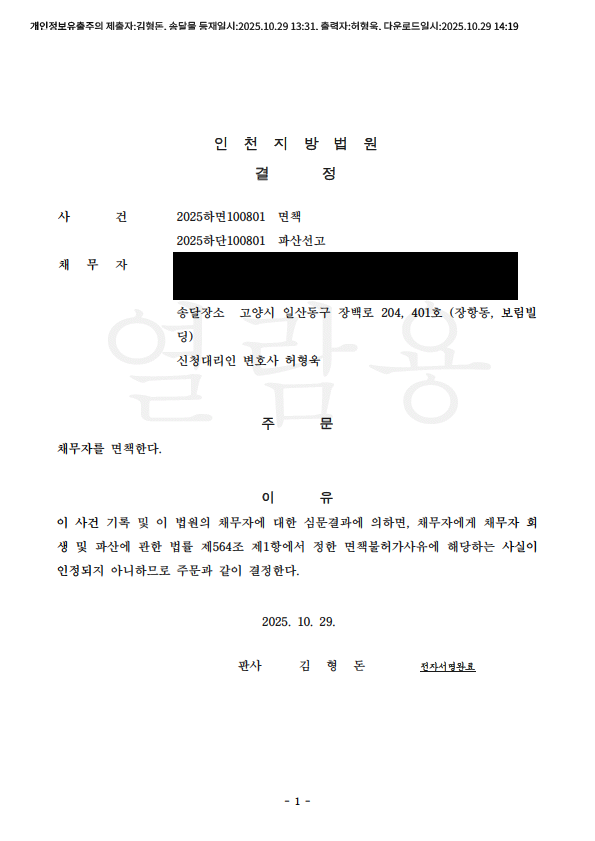 °³ÀÎÆÄ»ê ¸éÃ¥°áÁ¤ (ÀÎõÁö¹æ¹ý¿ø)