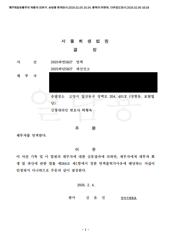 °³ÀÎÆÄ»ê ¸éÃ¥°áÁ¤ (¼¿ïȸ»ý¹ý¿ø)