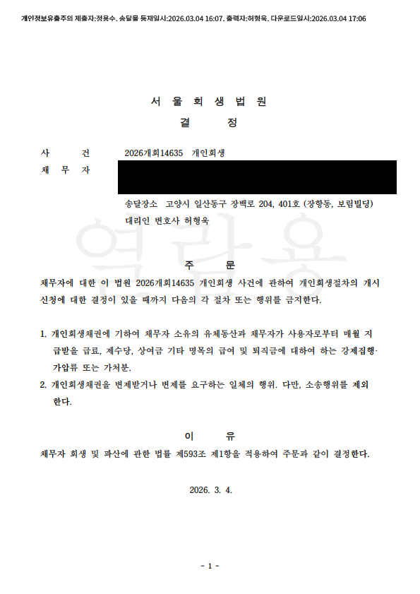 °³ÀÎȸ»ý ±ÝÁö¸í·É°áÁ¤ (¼¿ïȸ»ý¹ý¿ø)
