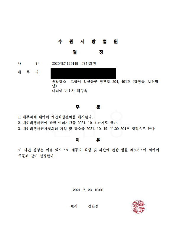 ¹ýÀÎ(°£ÀÌ)ȸ»ý ÀýÂ÷