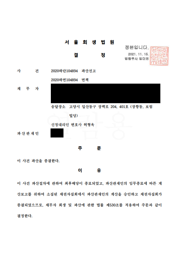 ¹ýÀÎ(°£ÀÌ)ȸ»ý ÀýÂ÷