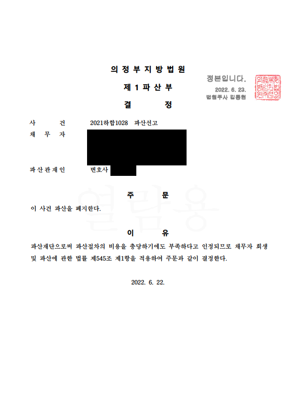 2022.6.23. ¹ýÀÎÆÄ»ê ÀÌ½ÃÆóÁö°áÁ¤(ÀÇÁ¤ºÎ)!!