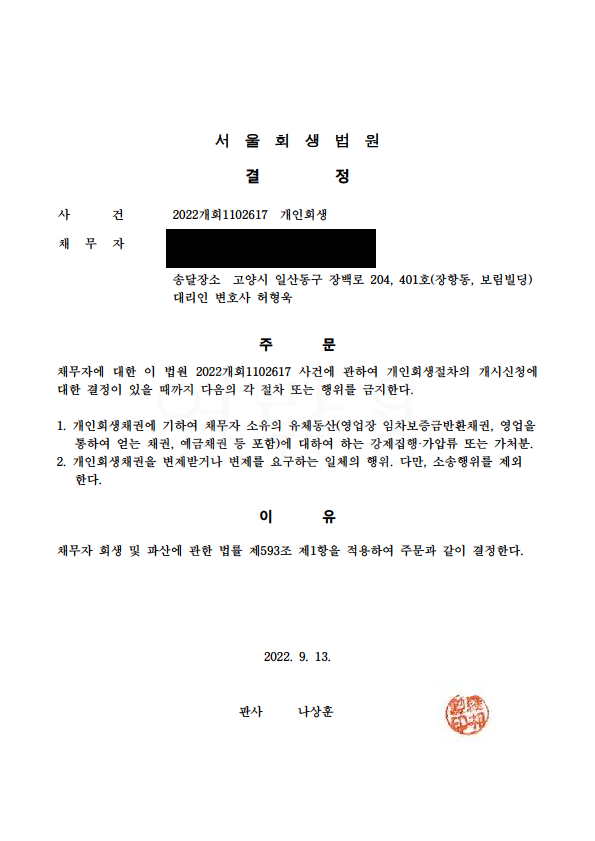 °³ÀÎȸ»ý ±ÝÁö¸í·É°áÁ¤