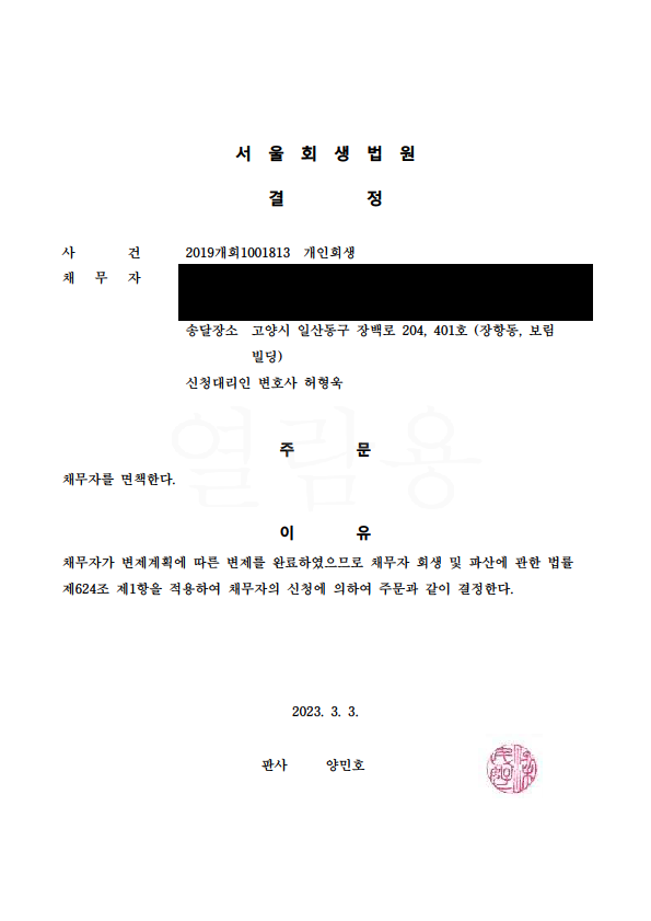 °³ÀÎȸ»ý º¯Á¦¿Ï·á ¸éÃ¥°áÁ¤