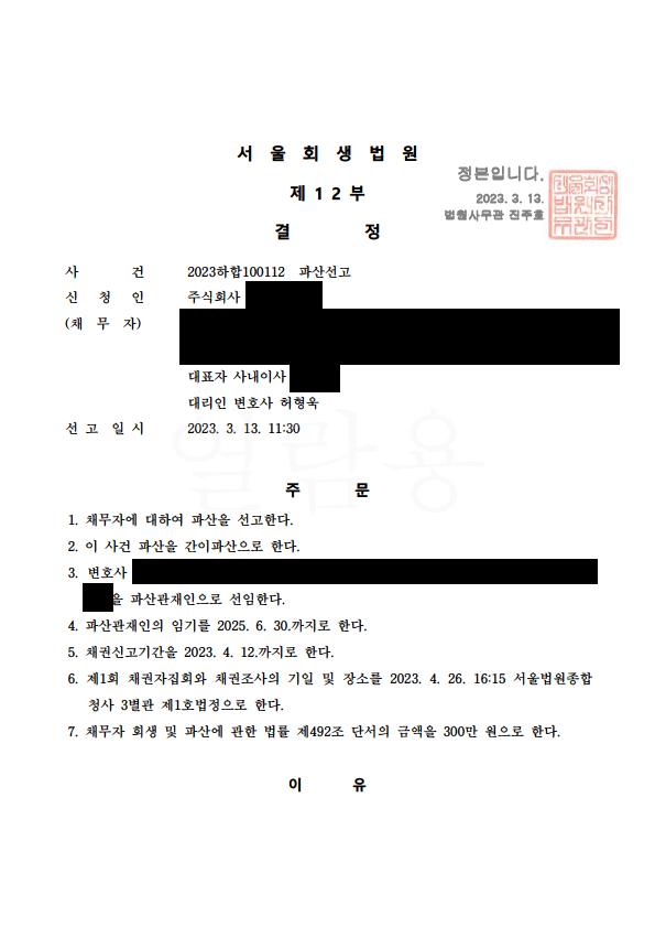 ¹ýÀÎ(°£ÀÌ)ȸ»ý ÀýÂ÷