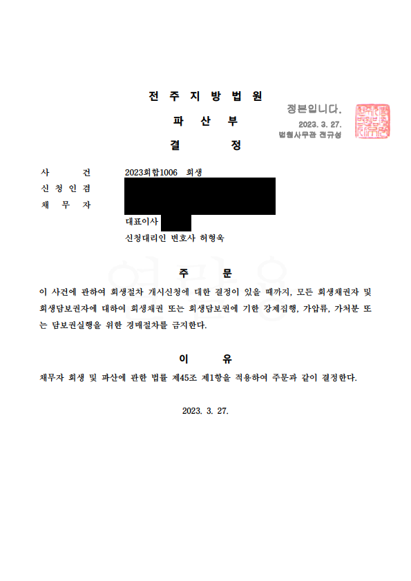 2023.3.27. ¹ýÀÎȸ»ýÆ÷°ý±ÝÁö°áÁ¤(ÀüÁÖ)!!