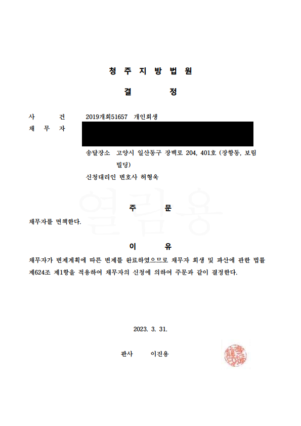 °³ÀÎȸ»ý º¯Á¦¿Ï·á ¸éÃ¥°áÁ¤