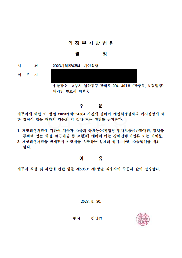 °³ÀÎȸ»ý ±ÝÁö¸í·É°áÁ¤