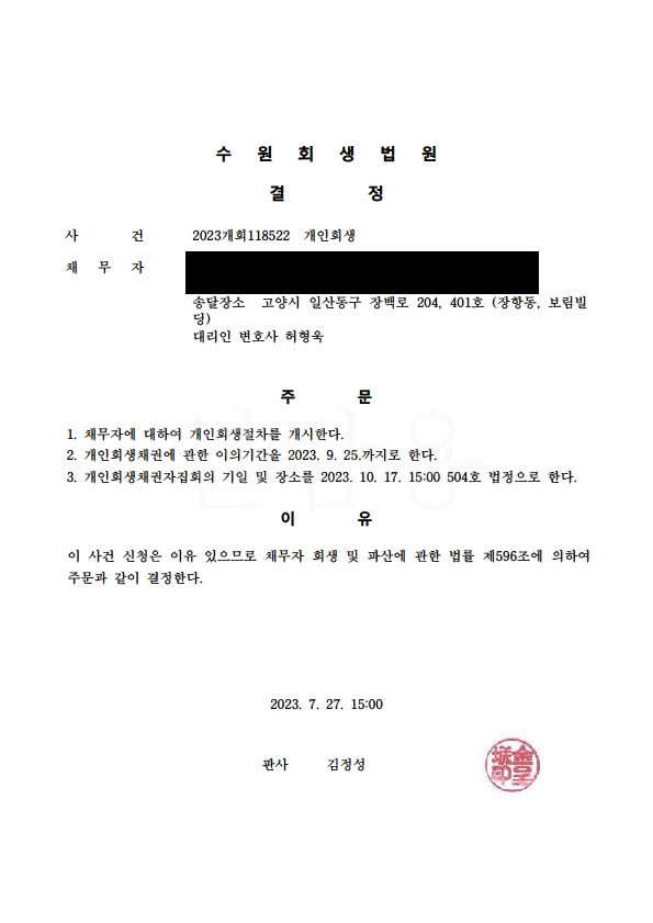 °³ÀÎȸ»ý °³½Ã°áÁ¤ (¼ö¿ø)