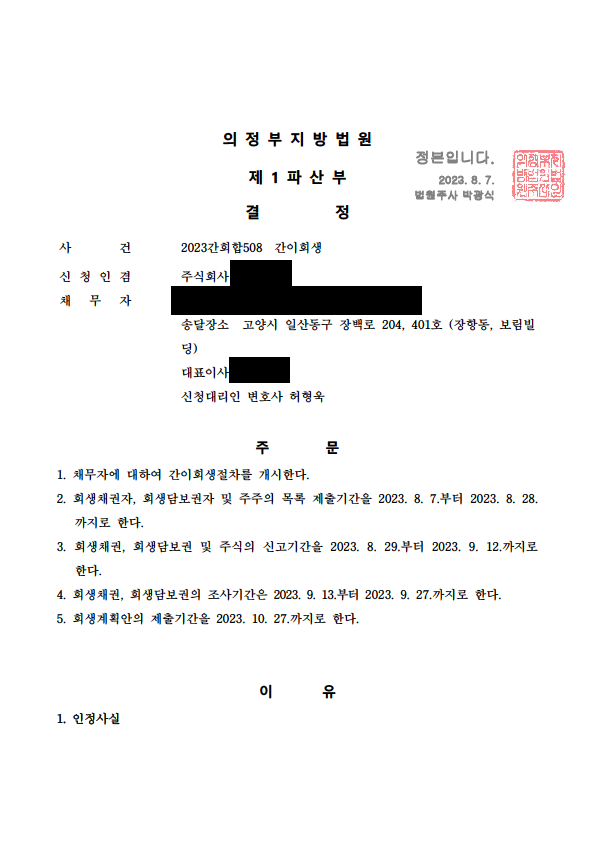 ¹ýÀÎ(°£ÀÌ)ȸ»ý ÀýÂ÷