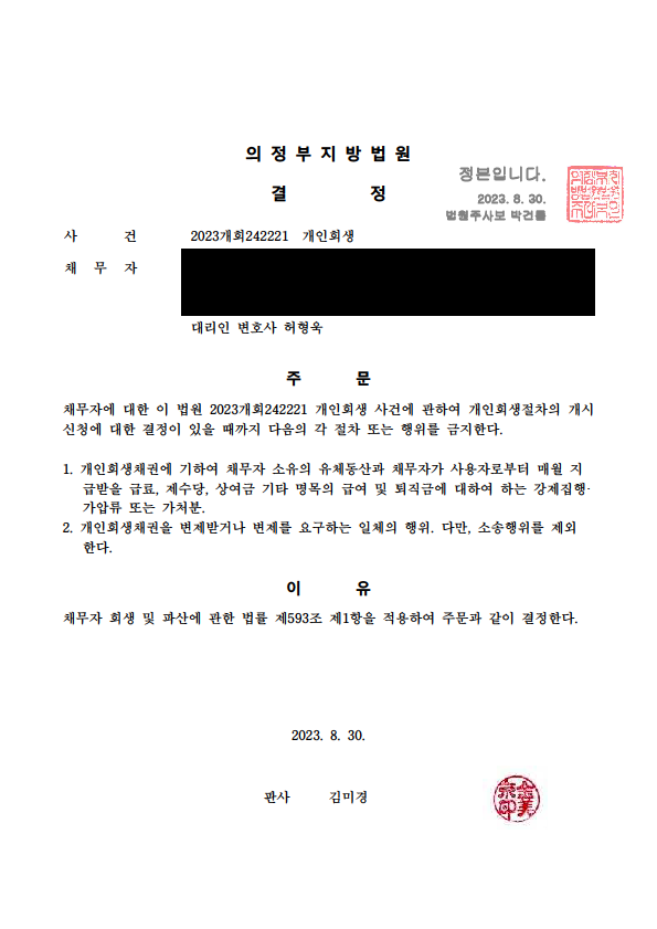 °³ÀÎȸ»ý ±ÝÁö¸í·É°áÁ¤