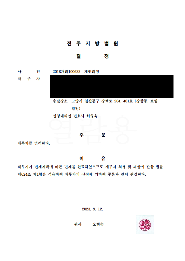 °³ÀÎȸ»ý º¯Á¦¿Ï·á ¸éÃ¥°áÁ¤