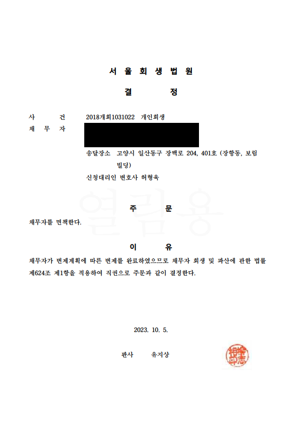 °³ÀÎȸ»ý º¯Á¦¿Ï·á ¸éÃ¥°áÁ¤