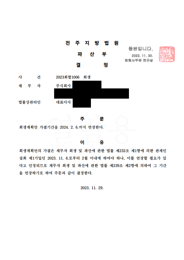¹ýÀÎȸ»ý°èȹ¾È °¡°á±â°£ ¿¬Àå°áÁ¤ (ÀüÁÖÁö¹æ¹ý¿ø)