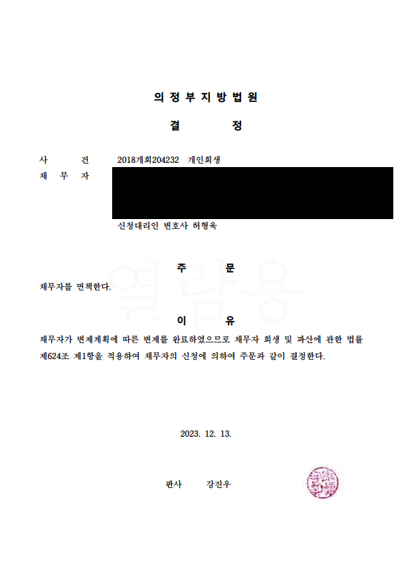 °³ÀÎȸ»ý º¯Á¦¿Ï·á ¸éÃ¥°áÁ¤ (ÀÇÁ¤ºÎÁö¹æ¹ý¿ø)