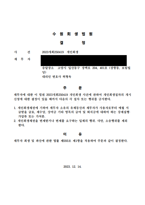 °³ÀÎȸ»ý ±ÝÁö¸í·É°áÁ¤ (¼ö¿øÈ¸»ý¹ý¿ø)