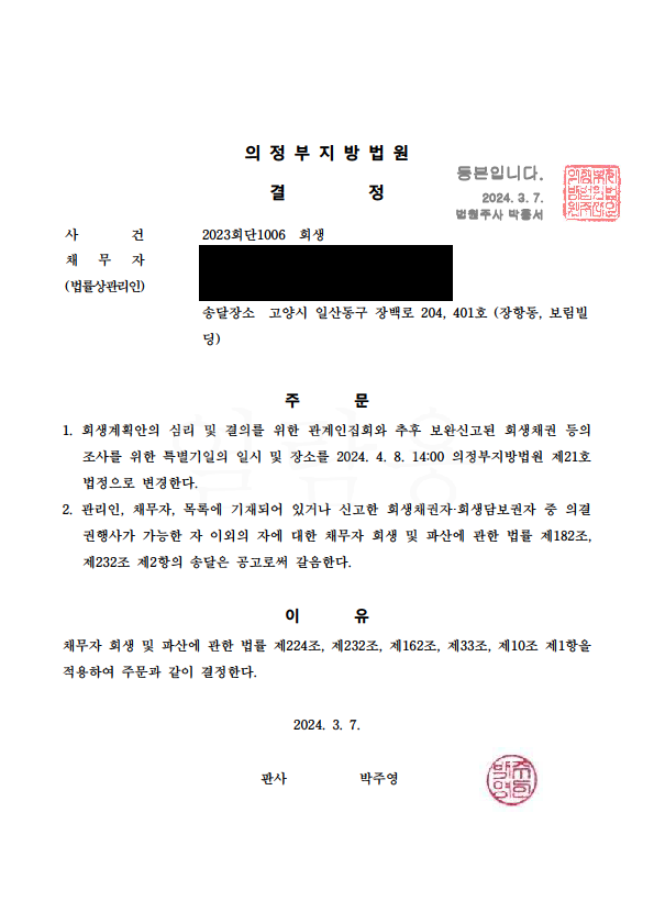 ¹ýÀÎ(°£ÀÌ)ȸ»ý ÀýÂ÷