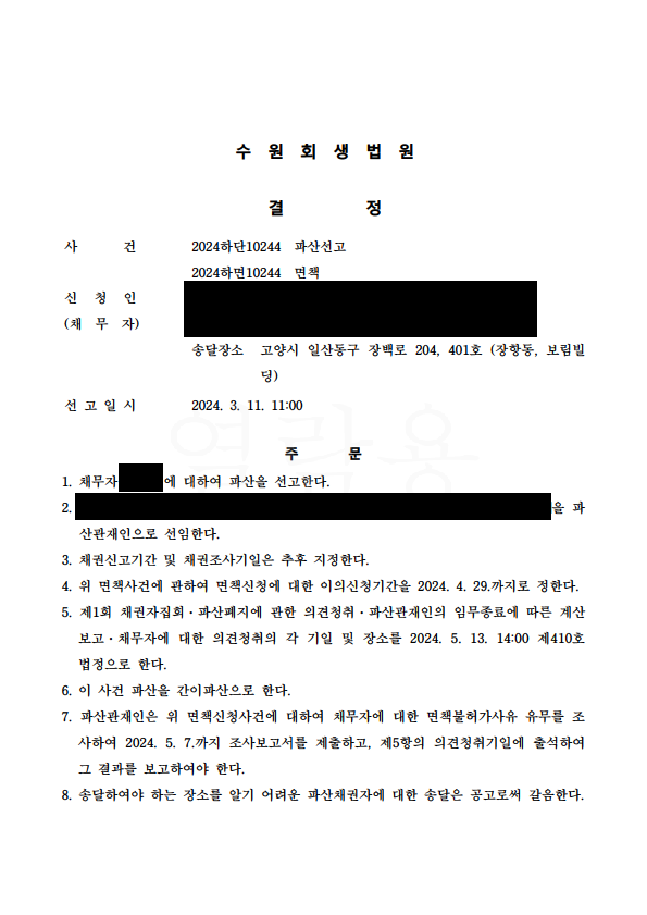 °³ÀÎÆÄ»ê ÆÄ»ê¼±°í°áÁ¤ (¼ö¿øÈ¸»ý¹ý¿ø)