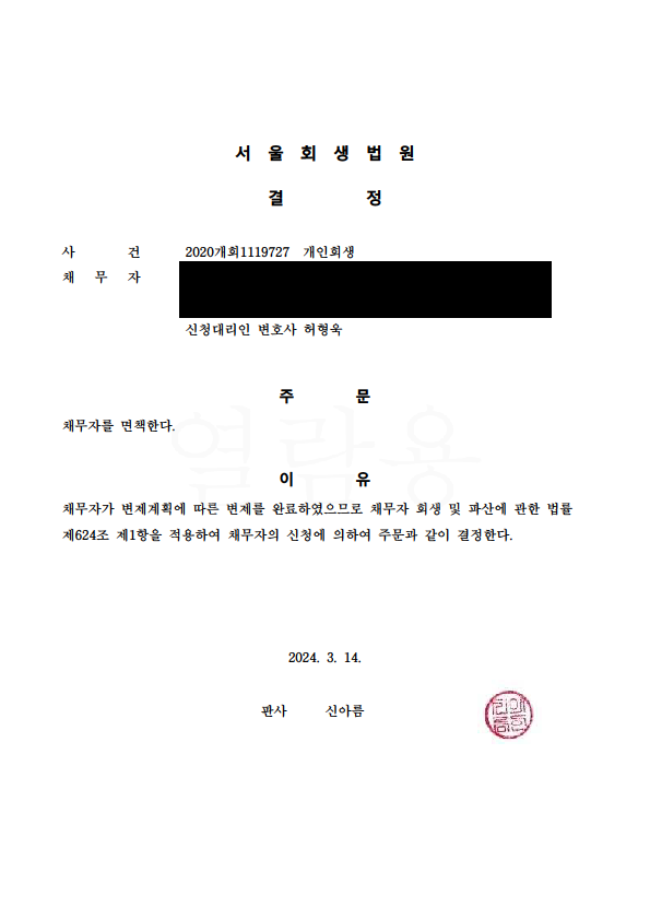 °³ÀÎȸ»ý º¯Á¦¿Ï·á ¸éÃ¥°áÁ¤ (¼¿ïȸ»ý¹ý¿ø)