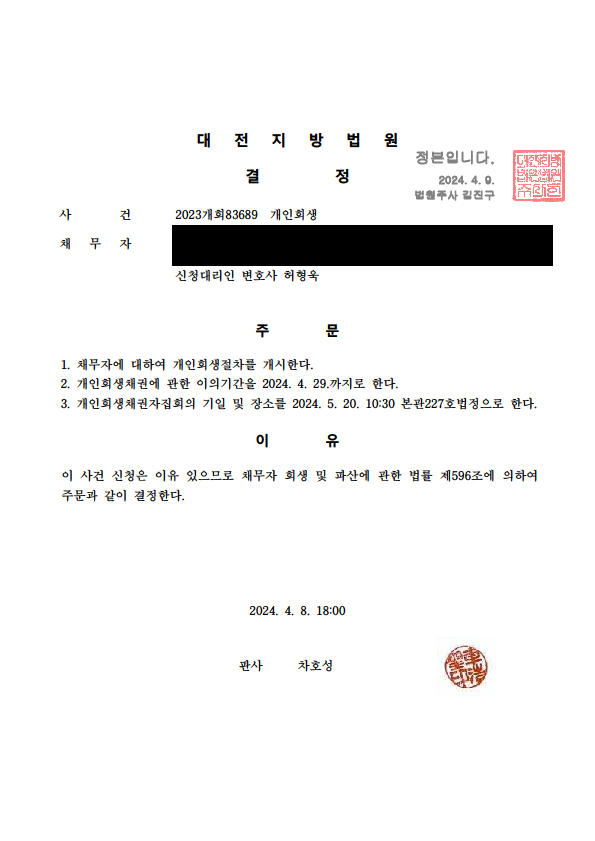 °³ÀÎȸ»ý °³½Ã°áÁ¤ (´ëÀüÁö¹æ¹ý¿ø)