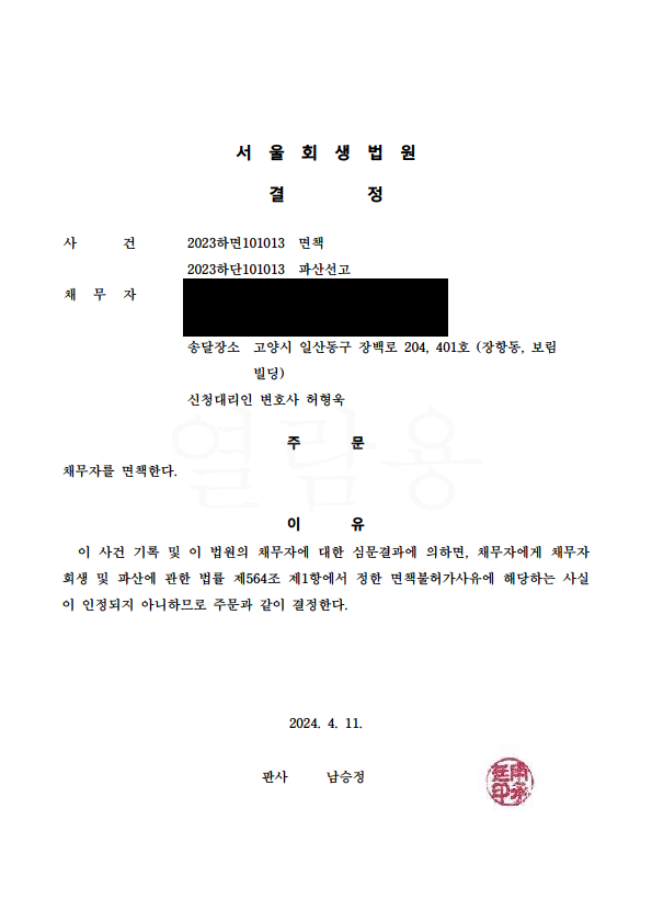 °³ÀÎÆÄ»ê ¸éÃ¥°áÁ¤ (¼¿ïȸ»ý¹ý¿ø)