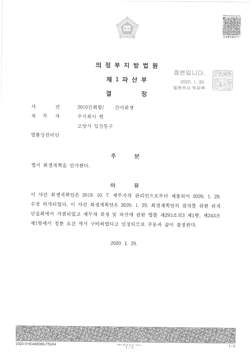 2020.1.29 ¹ýÀÎ °£ÀÌȸ»ý Àΰ¡°áÁ¤¹®