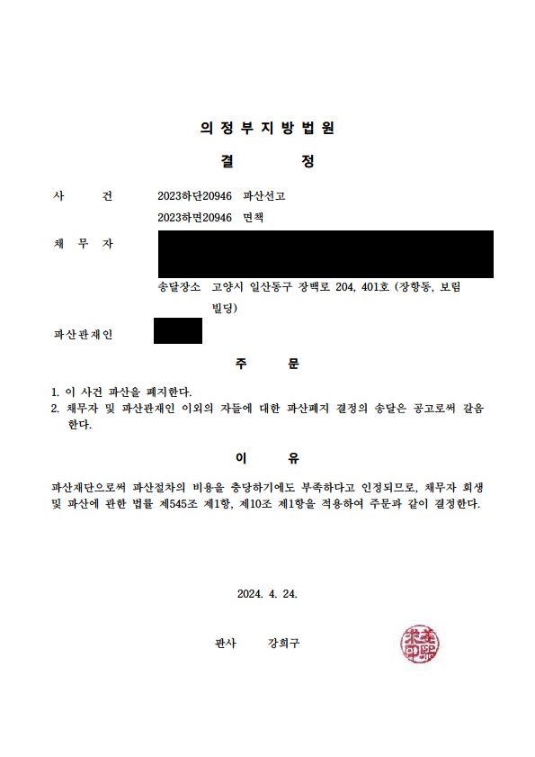 °³ÀÎÆÄ»ê ¸éÃ¥°áÁ¤ Àü, ÀÌ½ÃÆÄ»êÆóÁö°áÁ¤ (ÀÇÁ¤ºÎÁö¹æ¹ý¿ø)
