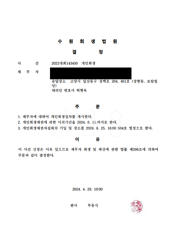 °³ÀÎȸ»ý °³½Ã°áÁ¤ (¼ö¿øÈ¸»ý¹ý¿ø)