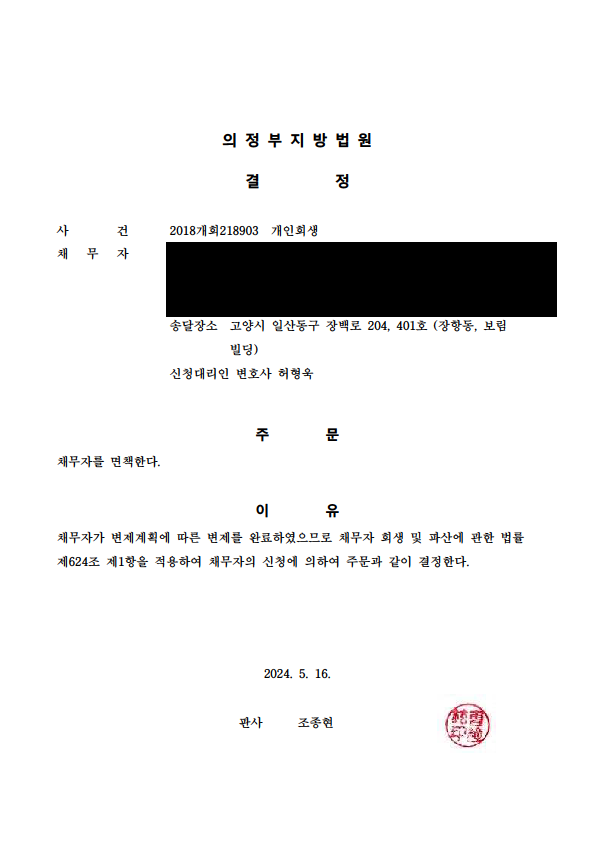 °³ÀÎȸ»ý º¯Á¦¿Ï·á ¸éÃ¥°áÁ¤ (ÀÇÁ¤ºÎÁö¹æ¹ý¿ø)