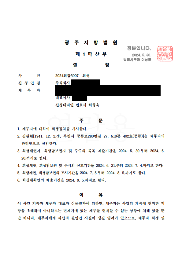 ¹ýÀÎȸ»ý °³½Ã°áÁ¤ (±¤ÁÖÁö¹æ¹ý¿ø)