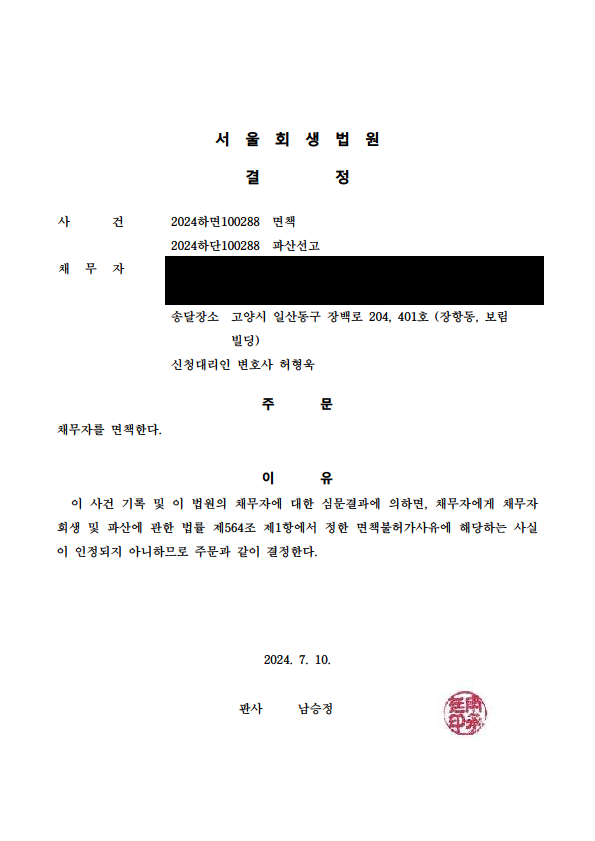 °³ÀÎÆÄ»ê ¸éÃ¥°áÁ¤ (¼¿ïȸ»ý¹ý¿ø)