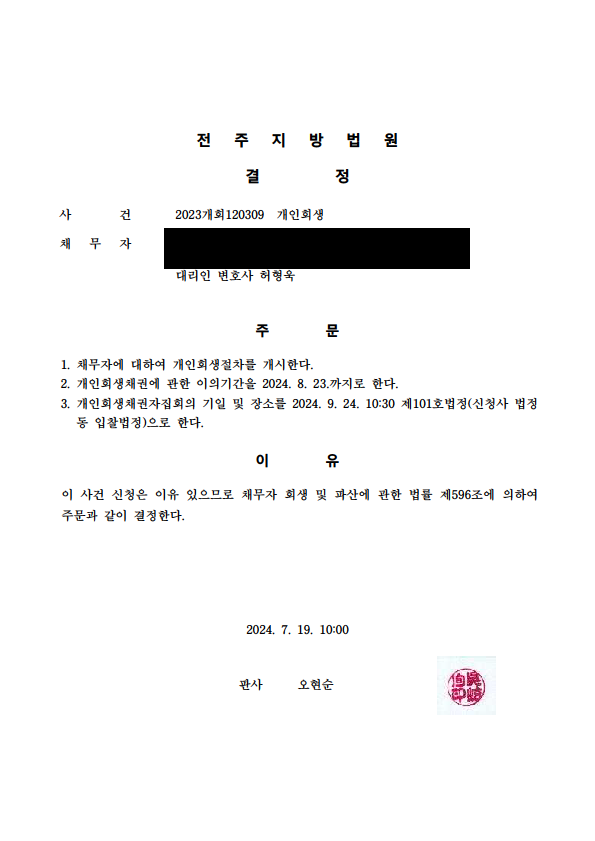 °³ÀÎȸ»ý °³½Ã°áÁ¤ (ÀüÁÖÁö¹æ¹ý¿ø)
