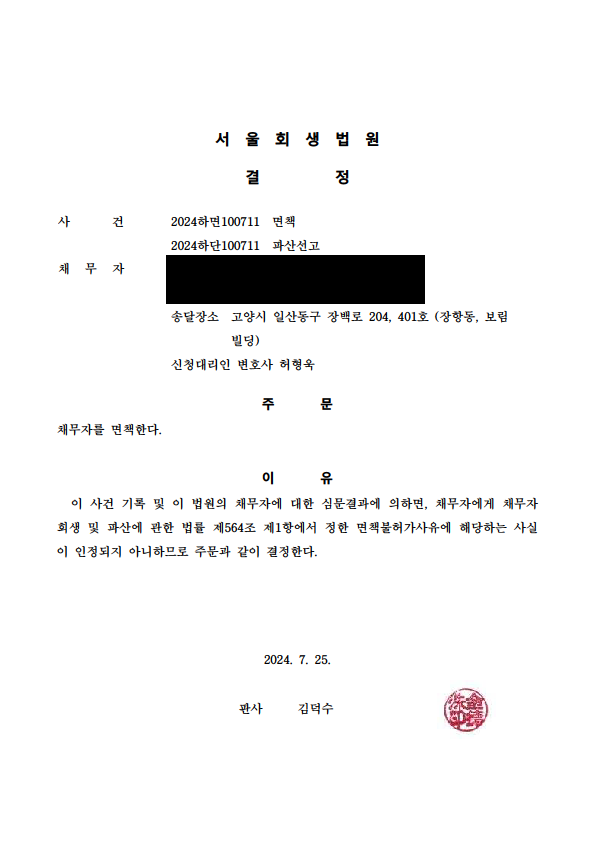 °³ÀÎÆÄ»ê ¸éÃ¥°áÁ¤ (¼¿ïȸ»ý¹ý¿ø)