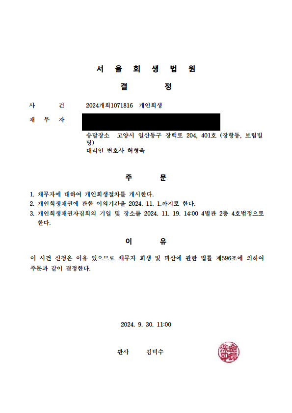 °³ÀÎȸ»ý °³½Ã°áÁ¤ (¼¿ïȸ»ý¹ý¿ø)