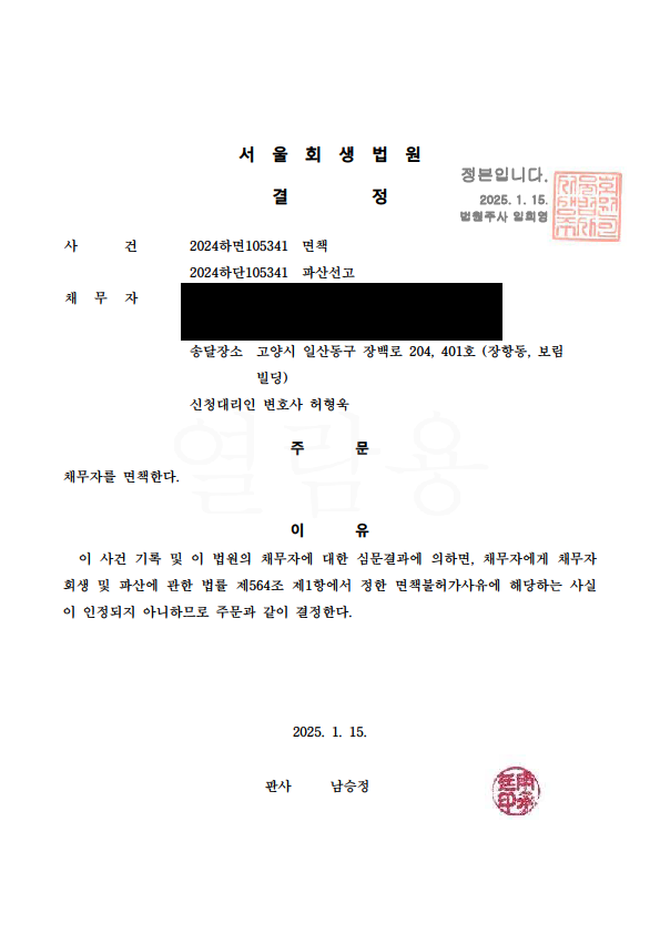 °³ÀÎÆÄ»ê ¸éÃ¥°áÁ¤ (¼¿ïȸ»ý¹ý¿ø)