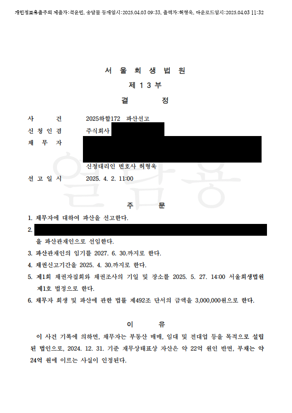 ¹ýÀÎÆÄ»ê ÆÄ»ê¼±°í°áÁ¤ (¼¿ïȸ»ý¹ý¿ø)