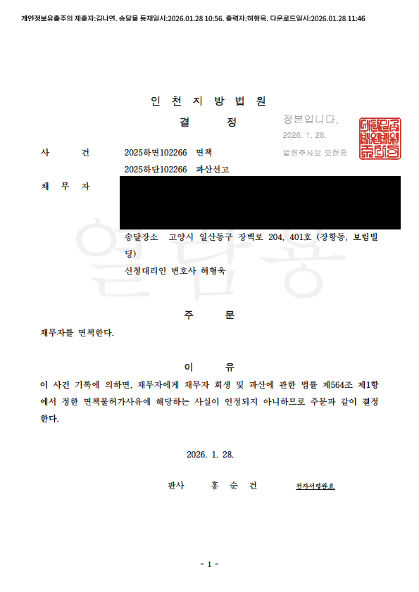 °³ÀÎÆÄ»ê ¸éÃ¥°áÁ¤ (ÀÎõÁö¹æ¹ý¿ø)