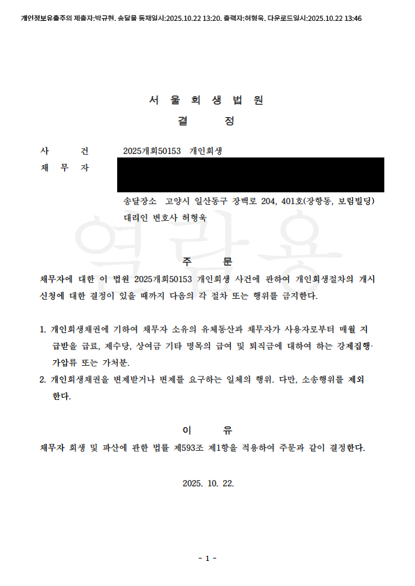 °³ÀÎȸ»ý ±ÝÁö¸í·É°áÁ¤ (¼¿ïȸ»ý¹ý¿ø)