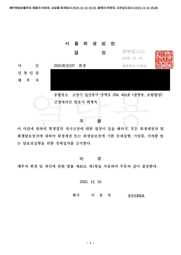 2025.12.16. ÀϹÝȸ»ýÆ÷°ý±ÝÁö¸í·É°áÁ¤(¼¿ï)!!