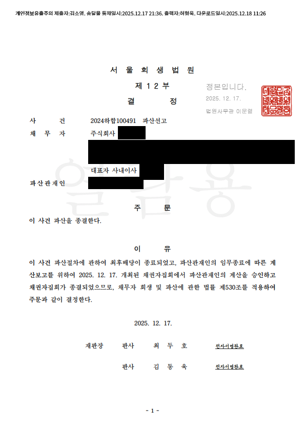 ¹ýÀÎÆÄ»ê Á¾°á°áÁ¤ (¼¿ïȸ»ý¹ý¿ø)