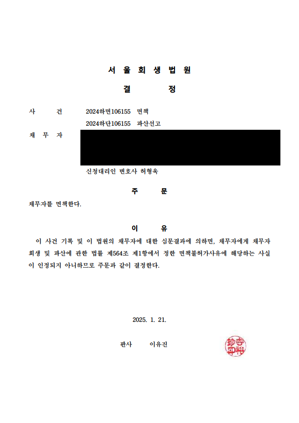 °³ÀÎÆÄ»ê ¸éÃ¥°áÁ¤ (¼¿ïȸ»ý¹ý¿ø)