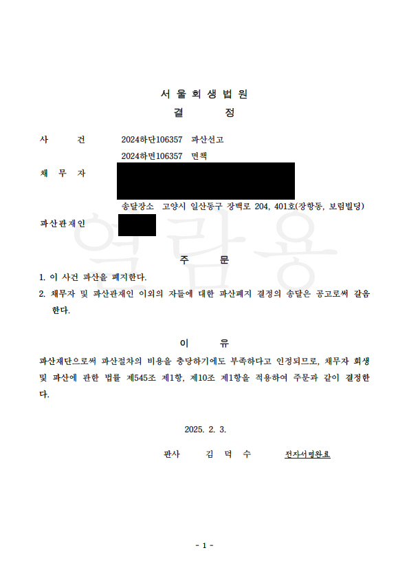 °³ÀÎÆÄ»ê ¸éÃ¥°áÁ¤ (ÆÄ»êÆóÁö°áÁ¤) (¼¿ïȸ»ý¹ý¿ø)