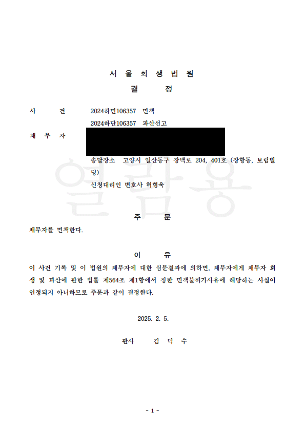 °³ÀÎÆÄ»ê ¸éÃ¥°áÁ¤ (¼¿ïȸ»ý¹ý¿ø)