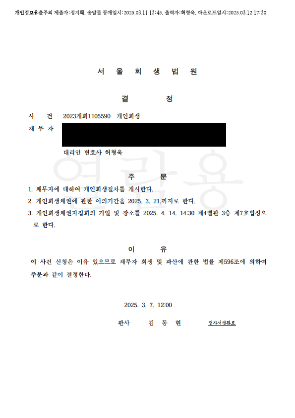 °³ÀÎȸ»ý °³½Ã°áÁ¤ (¼¿ïȸ»ý¹ý¿ø)