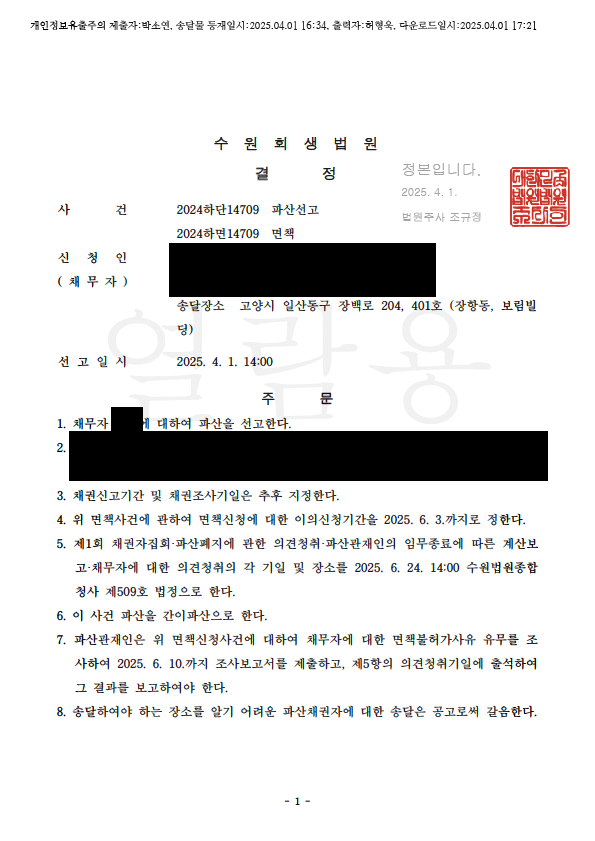 °³ÀÎÆÄ»ê ÆÄ»ê¼±°í°áÁ¤ (¼ö¿øÈ¸»ý¹ý¿ø)