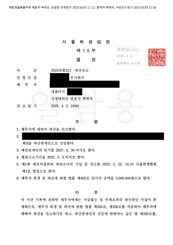 ¹ýÀÎÆÄ»ê ÆÄ»ê¼±°í°áÁ¤ (¼¿ïȸ»ý¹ý¿ø)