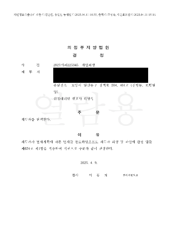 °³ÀÎȸ»ý º¯Á¦¿Ï·á ¸éÃ¥°áÁ¤ (ÀÇÁ¤ºÎÁö¹æ¹ý¿ø)