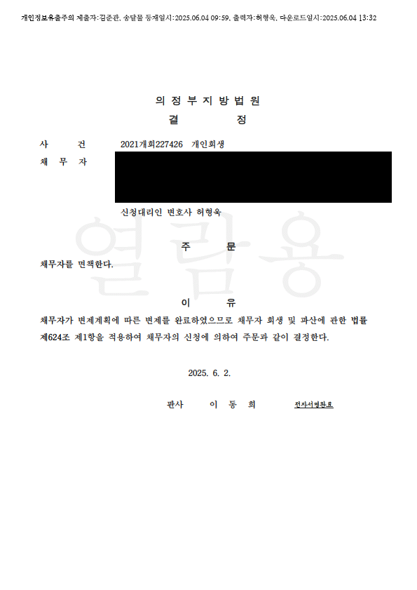 °³ÀÎȸ»ý º¯Á¦¿Ï·á ¸éÃ¥°áÁ¤ (ÀÇÁ¤ºÎÁö¹æ¹ý¿ø)