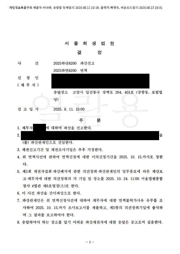 °³ÀÎÆÄ»ê ÆÄ»ê¼±°í°áÁ¤ (¼¿ïȸ»ý¹ý¿ø)