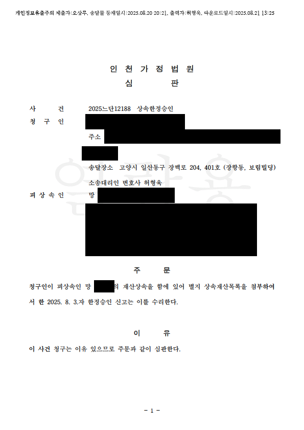 »ó¼ÓÇÑÁ¤½ÂÀÎ½ÉÆÇû±¸ Àοë°áÁ¤ (ÀÎõ°¡Á¤¹ý¿ø)